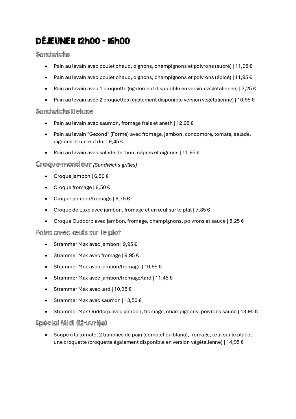 Que vous craquiez pour un classique avec du bacon et du fromage, une création sucrée avec des fruits frais et de la crème fouettée, ou une crêpe salée bien garnie après une journée à la plage à Ouddorp : chez nous, chaque bouchée est un régal. Profitez d'une crêpe chaude, d'une bonne tasse de café et de la convivialité si typique d'Ouddorp.