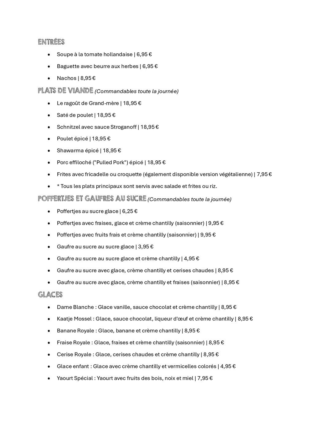 Pannenkoeken pour grands et petits, chez Pannenkoekenhuis Ouddorp nous avons tout. En plus des pannenkoeken, nous avons aussi une petite carte de déjeuner et de viandes. Cliquez sur les boutons de menu pour consulter la carte.