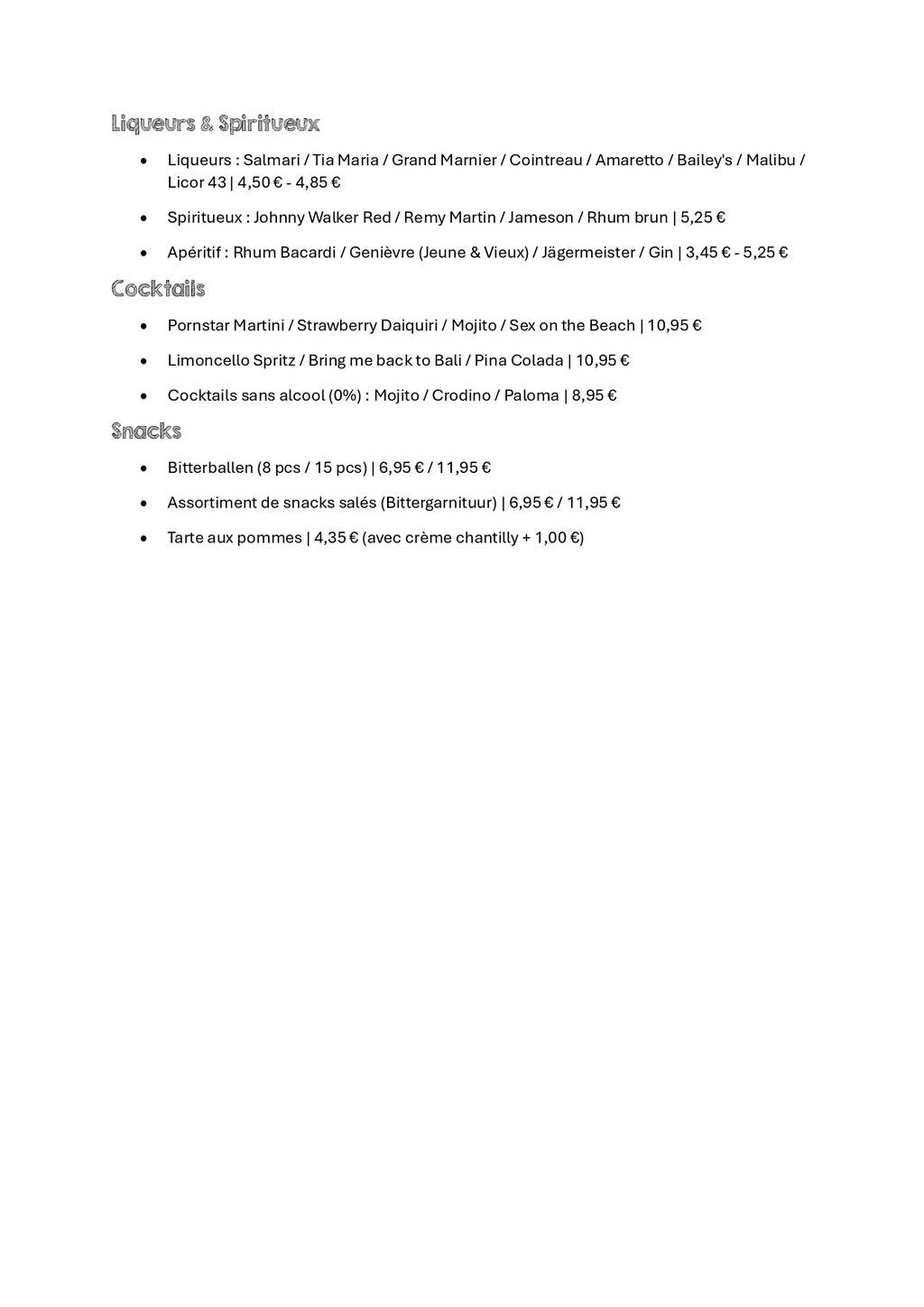 Nous offrons également des solutions pour vos anniversaires (enfants), fêtes et événements de toutes sortes. Avez-vous d'autres souhaits ? Nous appliquons le principe du 'tout est possible'. Un service de traiteur et de réception sur mesure est possible. Nous serions ravis d'avoir de vos nouvelles !